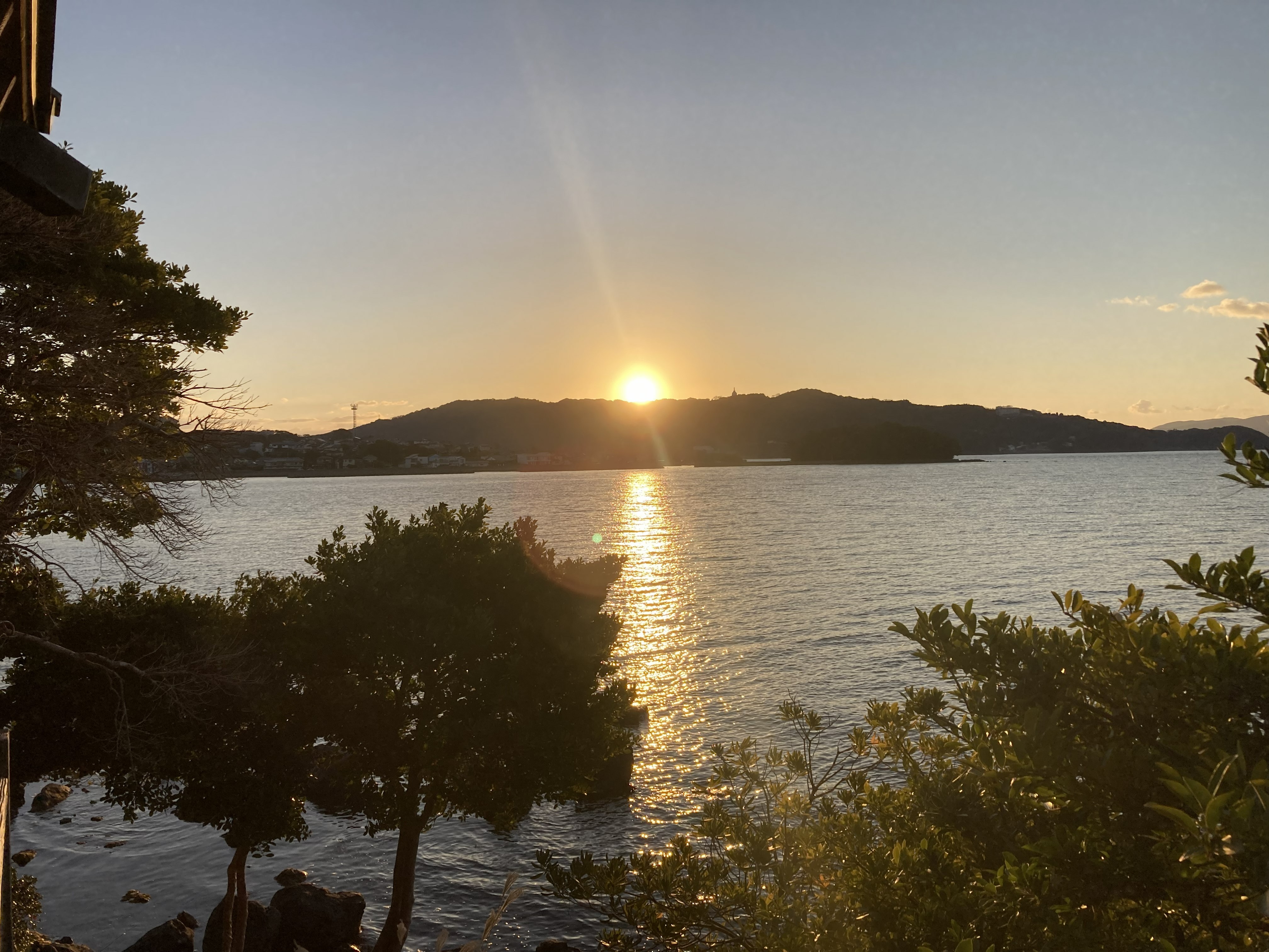 海岸の清掃終えて東屋で友と語らい日の出待ちおり